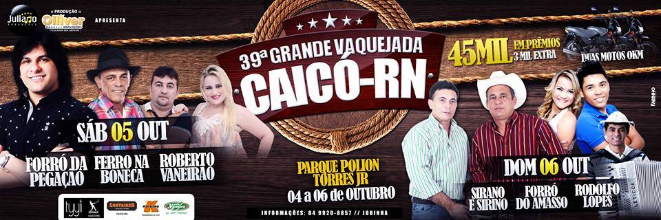 Dias 05 & 06 de Outubro em Caicó/RN tem: FORRÓ DA PEGAÇÃO - FERRO NA BONECA - ROBERTO VANEIRÃO - SIRANO & SIRINO - e RODOLFO LOPES ...